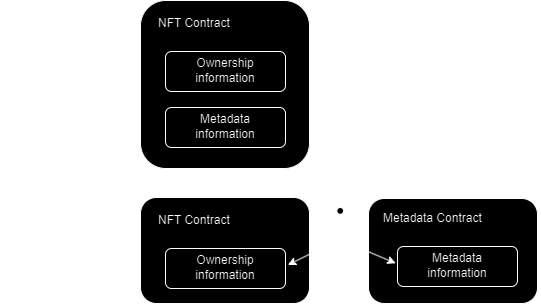The way we achieve this is by splitting ownership information and metadata information into different contracts. For example, with NFTs (ERC721), contracts have a function to get the owner of an NFT (ownerOf), as well as a function to get the content of the NFT (tokenURI), and these are typically bundled into the same ERC721 contract.