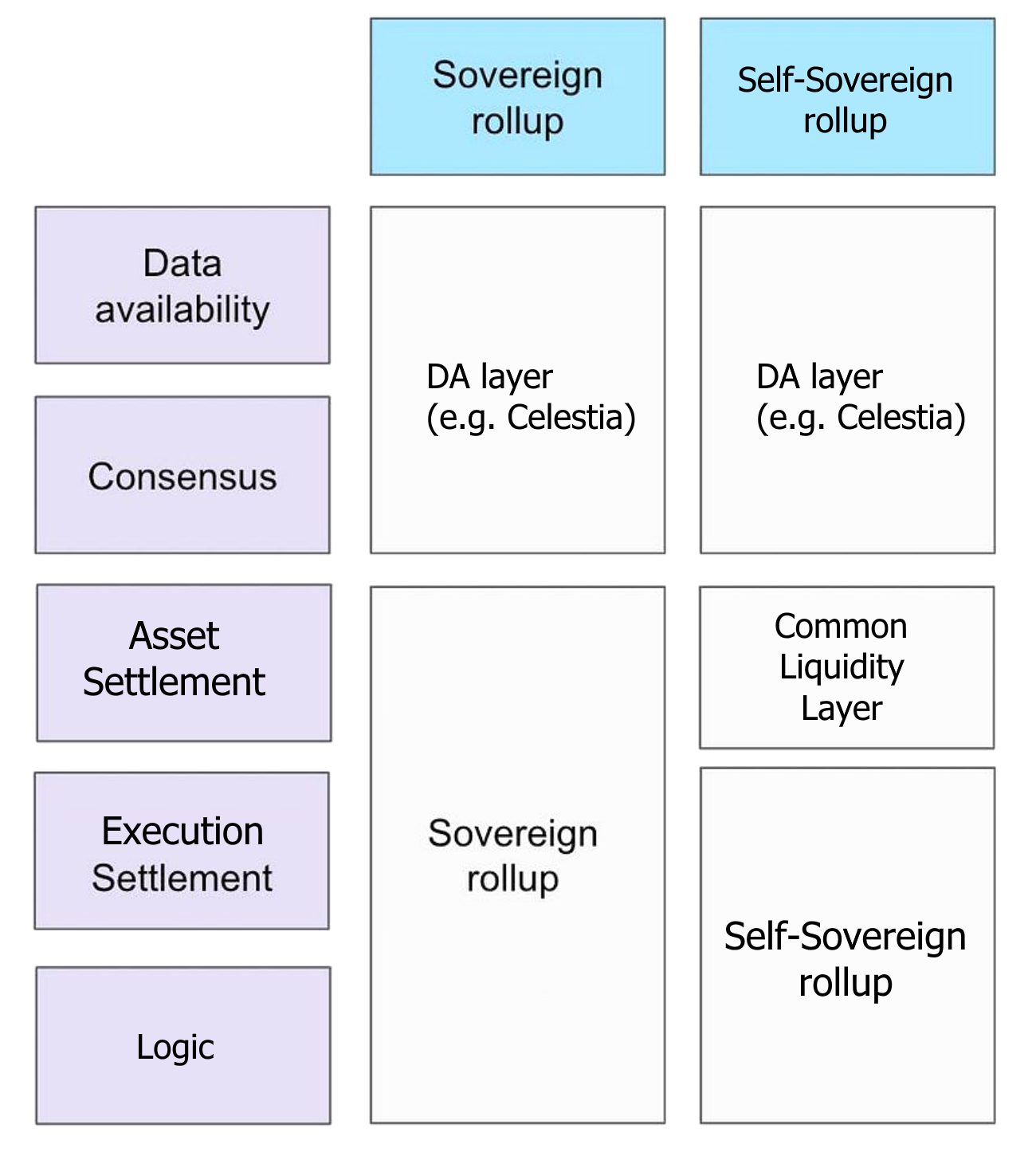 As you can see, sovereign rollups are the most flexible, as they have no additional constraints (no need to build a system that the underlying L1 can understand - you can build something totally custom).