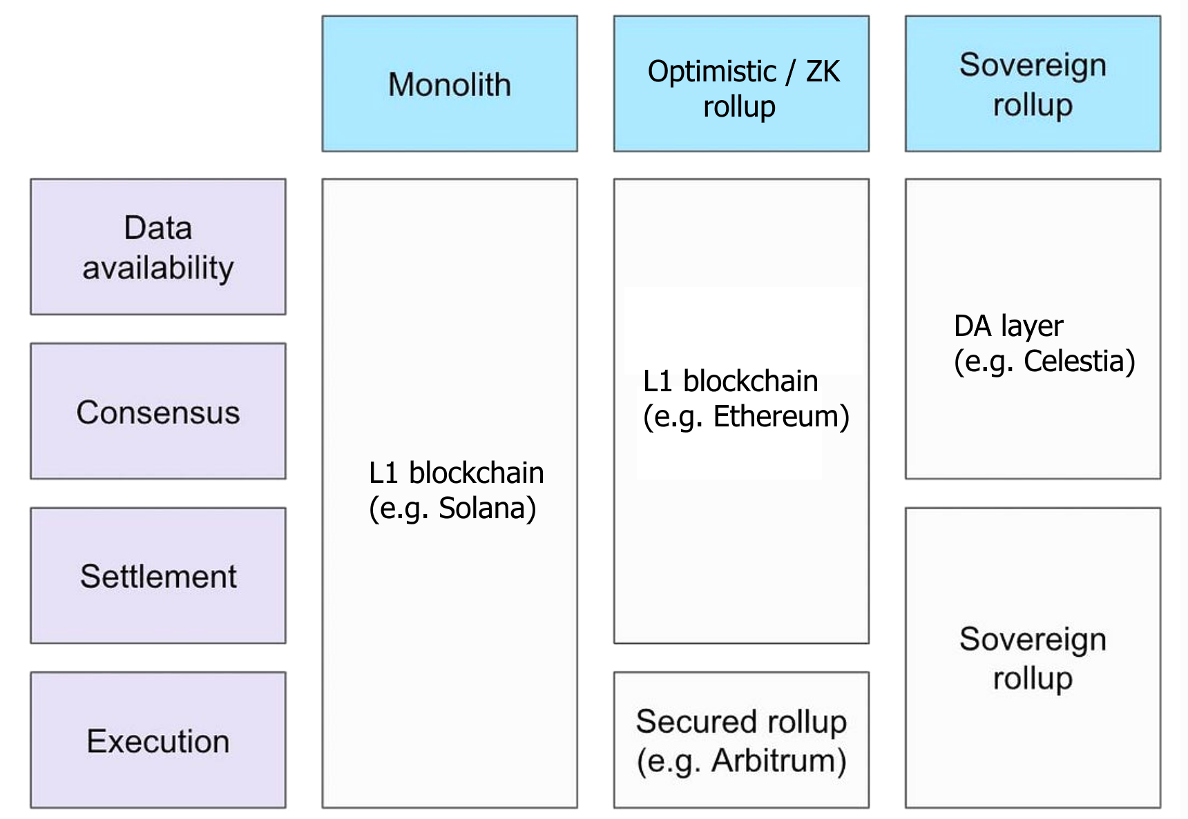 As you can see, sovereign rollups are the most flexible, as they have no additional constraints (no need to build a system that the underlying L1 can understand - you can build something totally custom).