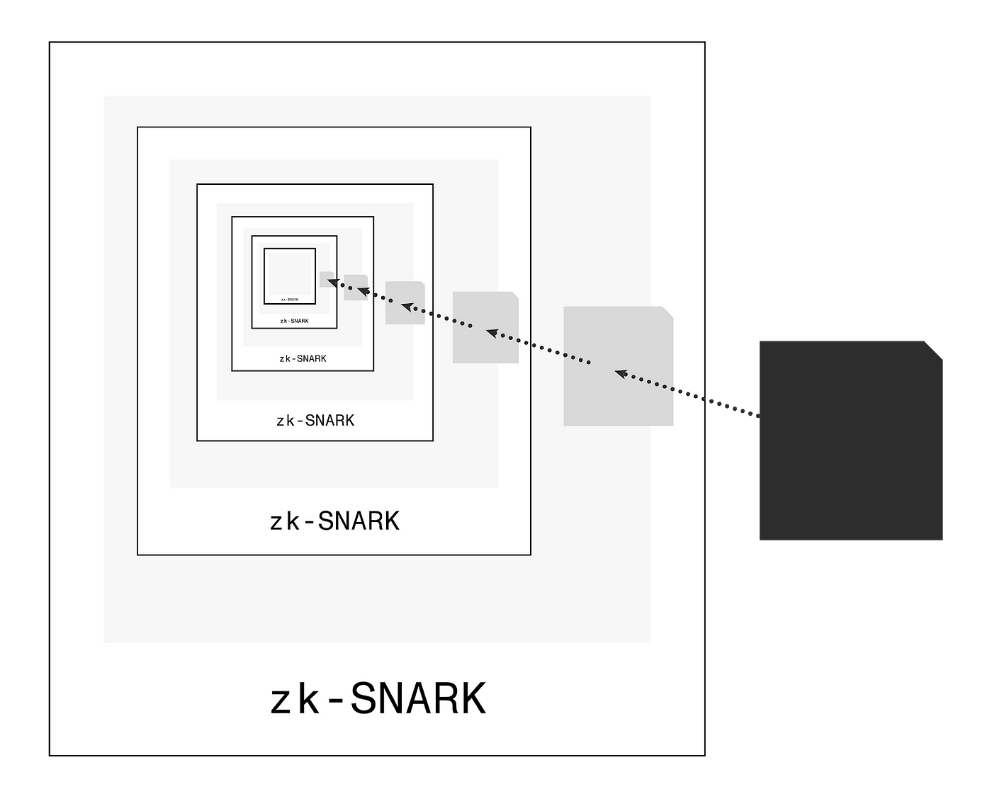 Fortunately, there is a technology that allows taking information about such an instance and compressing what happened in that instance down to a single constant-sized crypographic proof. The name of this technique is called Recursive SNARKS and they are a kind of ZK (zero-knowledge) proof. Therefore, we just need to ensure that the way the code for the game logic is written is friendly to this technique.