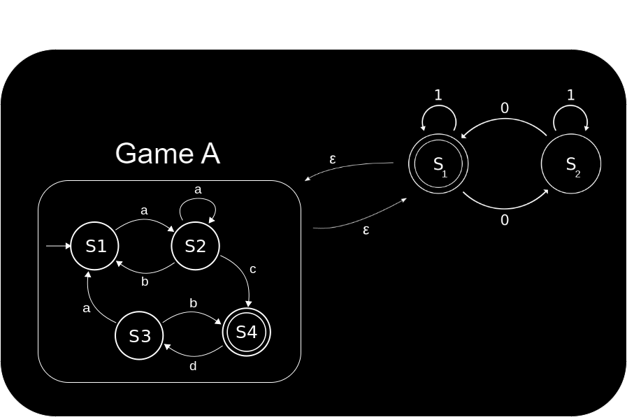 - More generally, how can we compose this with other games without having to embed the whole state machine of one game into the other (as discussed here) to achieve this?